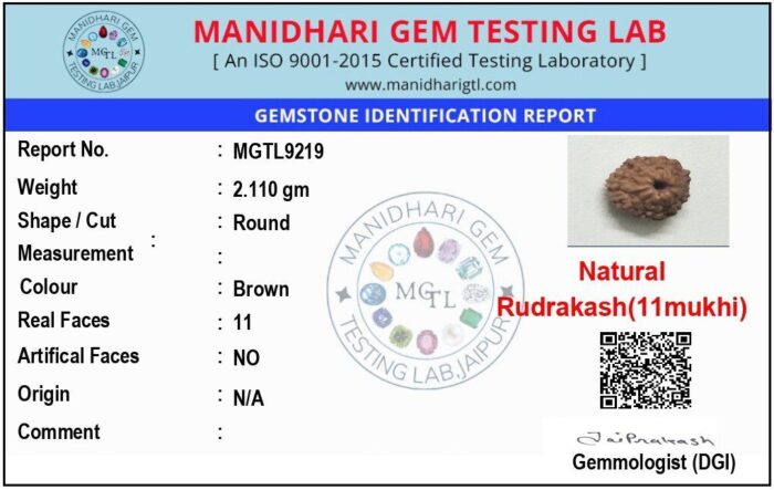 The associated planet of the 11 Mukhi Rudraksha is Mars (Mangal). It helps balance the fiery energy of Mars, reducing aggression and promoting courage, energy, and leadership. It also protects the wearer from accidents, conflicts, and sudden losses.