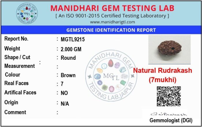The associated planet of the 7 Mukhi Rudraksha is Saturn (Shani). Wearing this Rudraksha helps reduce the malefic effects of Saturn, bringing relief from obstacles, debts, and delays. It promotes patience, discipline, and spiritual progress.