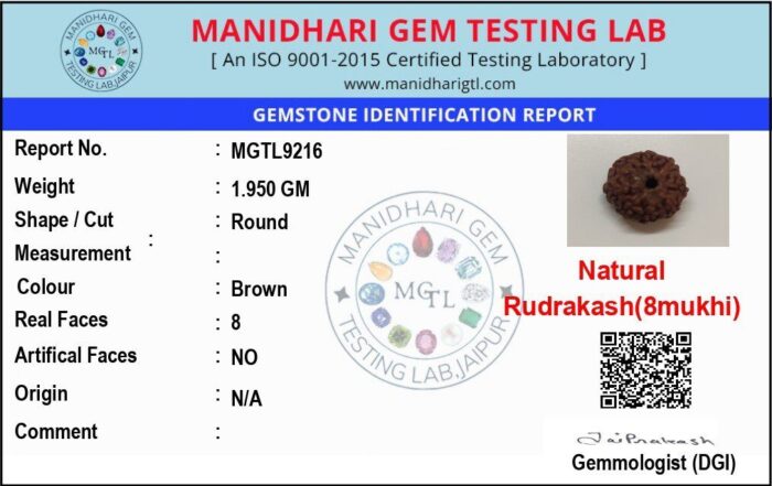 The associated planet of the 8 Mukhi Rudraksha is Rahu. Wearing this Rudraksha helps neutralize the malefic effects of Rahu, reducing confusion, illusions, and sudden challenges. It brings mental clarity, discipline, and protection from negative influences.